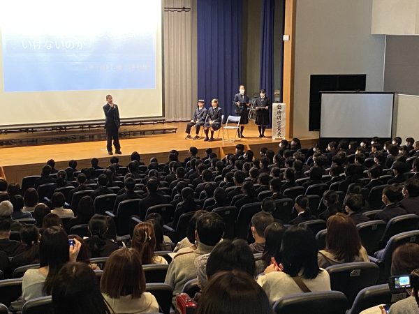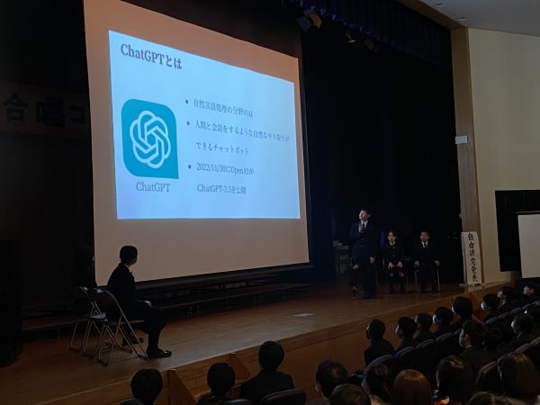 前半は夏休みに取り組んだ自由研究の優秀者の発表と、各クラスによる短いパフォーマンスが行われました。