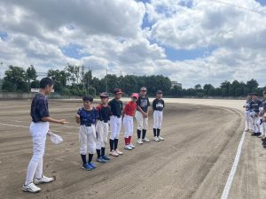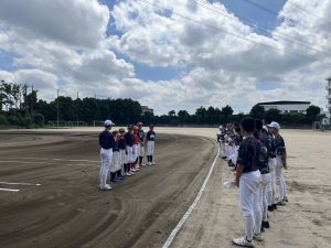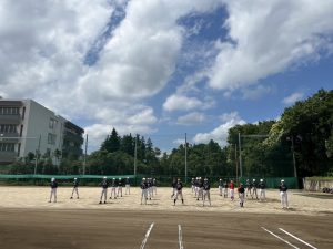 前日までの大雨で開催が危ぶまれましたが、部員一同、直前まで心を込めて球場整備をすることができました。