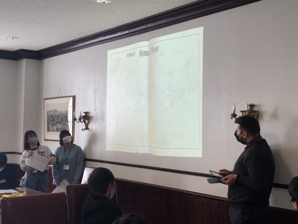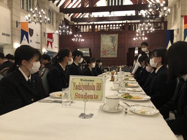 テーブルマナー(イギリス式)を学びました。ナイフとフォークは外側から順番に使っていくという基本から、ちょっとした応用まで、クイズ形式で教えてもらいました。これで、AEM諸君は世に出た後も紳士淑女として振る舞えますね(笑)。