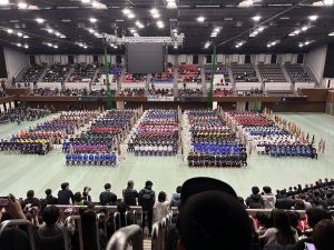 たかおかアリーナ京都で開会式が行われました。開会式前には、千葉県高等学校体育連盟様がお忙しいなか、激励のため開会式会場までお越しくださいました。 本校のオーダーは以下のとおりです。