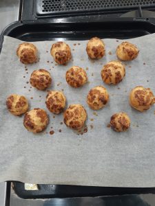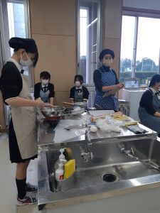 本日調理部の活動では、高校2年生が修学旅行中のため、高校1年生のみでの活動となりました。部員たちはフランスの伝統的なお菓子「シュケット」の実技試験に取り組みました。