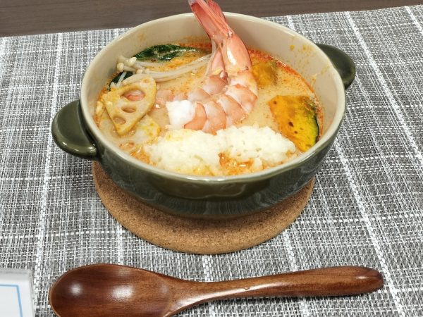 桐生さんの、牛乳で炊いたもち米を丸めて入れたスンドゥブ。