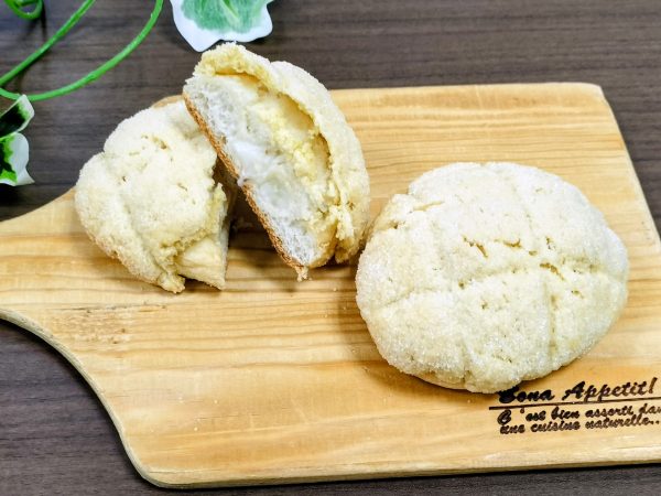 室田さんの、市販の丸パンにクッキー生地をかぶせて焼き、中にミルククリームを絞ったメロンパン。