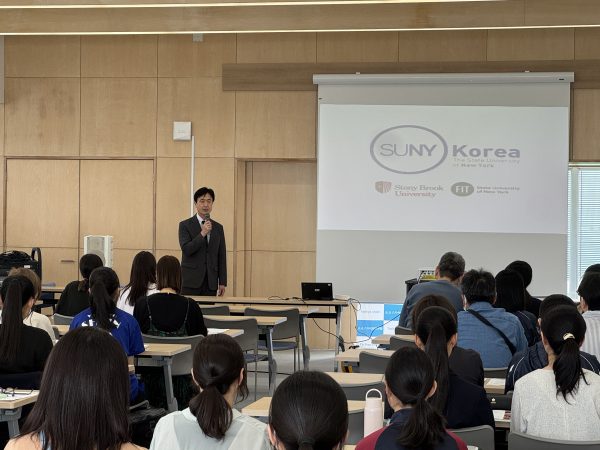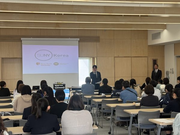 続いて、副校長より**SUNY KOREA(ニューヨーク州立大学韓国校)**についての紹介がありました。海外大学という進路の可能性について触れ、生徒たちの視野を広げる内容となりました。
